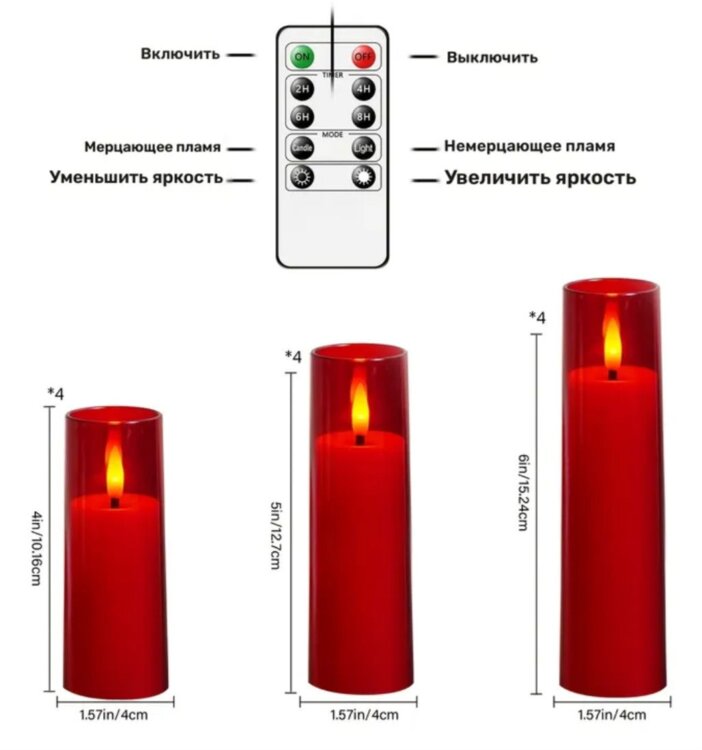 Можно выбрать режим свечки где пламя слегка дрожит либо обычный режим
